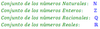 Y como mucho del trabajo que realizaremos estará centrado en ciertos conjuntos numéricos, a éstos en particular los denotaremos de la siguiente manera: