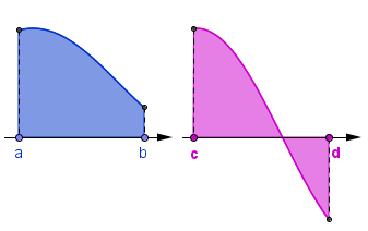 En esta sección trabajaremos con regiones planas limitadas por funciones continuas (por tanto integrables) definidas en un intervalo cerrado [a,b]. Es decir, regiones R(f,a,b) como las que se muestran en las figuras siguientes: