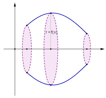 Calcular los volúmenes contenidos al rotar la gráfica de una función definida en un intervalo cerrado [a,b].